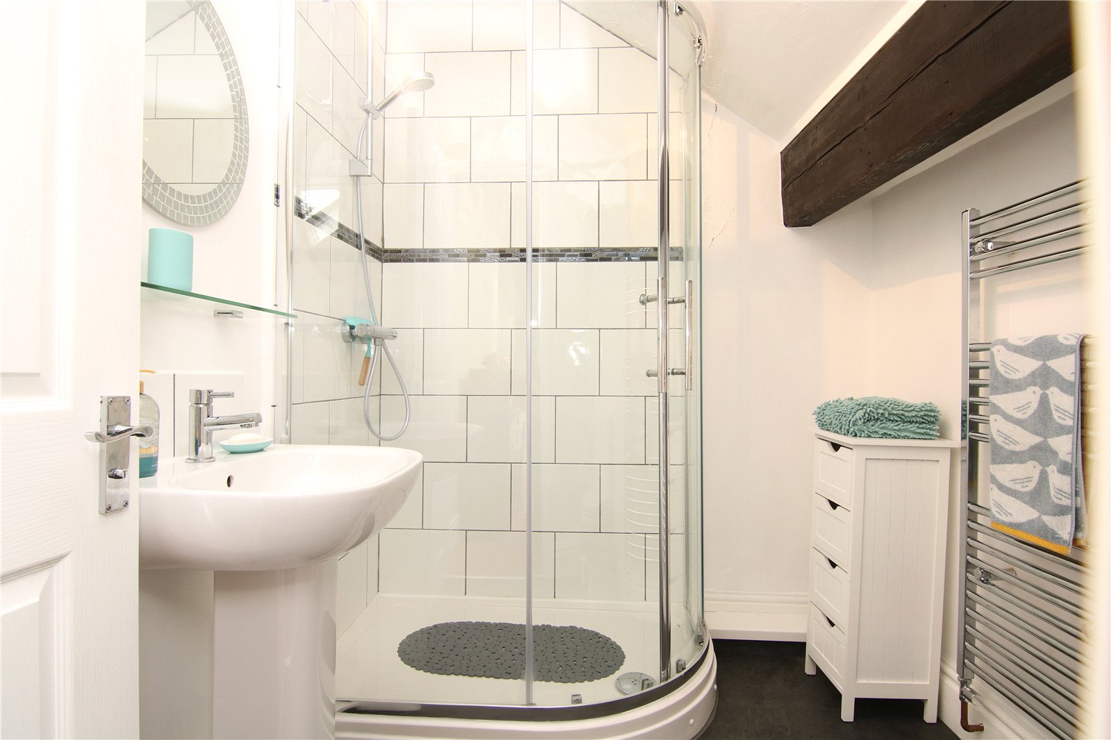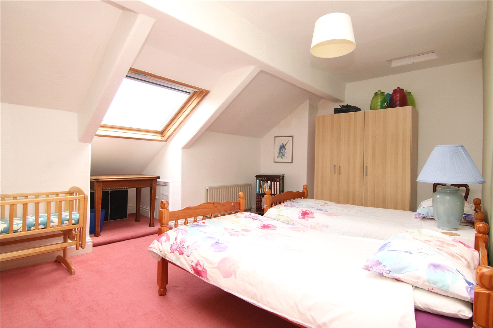 The first floor holds a large principal bedroom beside the house bathroom, with space for an en-suite if desired. A further double bedroom with built-in wardrobes and a generous single complete this level. The top floor provides another spacious bedroom with a Velux window, eaves storage and a modern shower room.