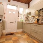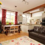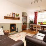 At the rear, the living and dining kitchen forms the heart of the house. Timber floors run throughout, a log-burning stove sits at the centre of the sitting area, and a large window in the dining space draws in natural light. The kitchen blends well with its surroundings, fitted with modern wall and base units, integrated appliances and ample workspace. An external door opens to the garden and stone steps lead down to the cellar. The cellar is a vast space with huge potential, previously used as a games room and family area.