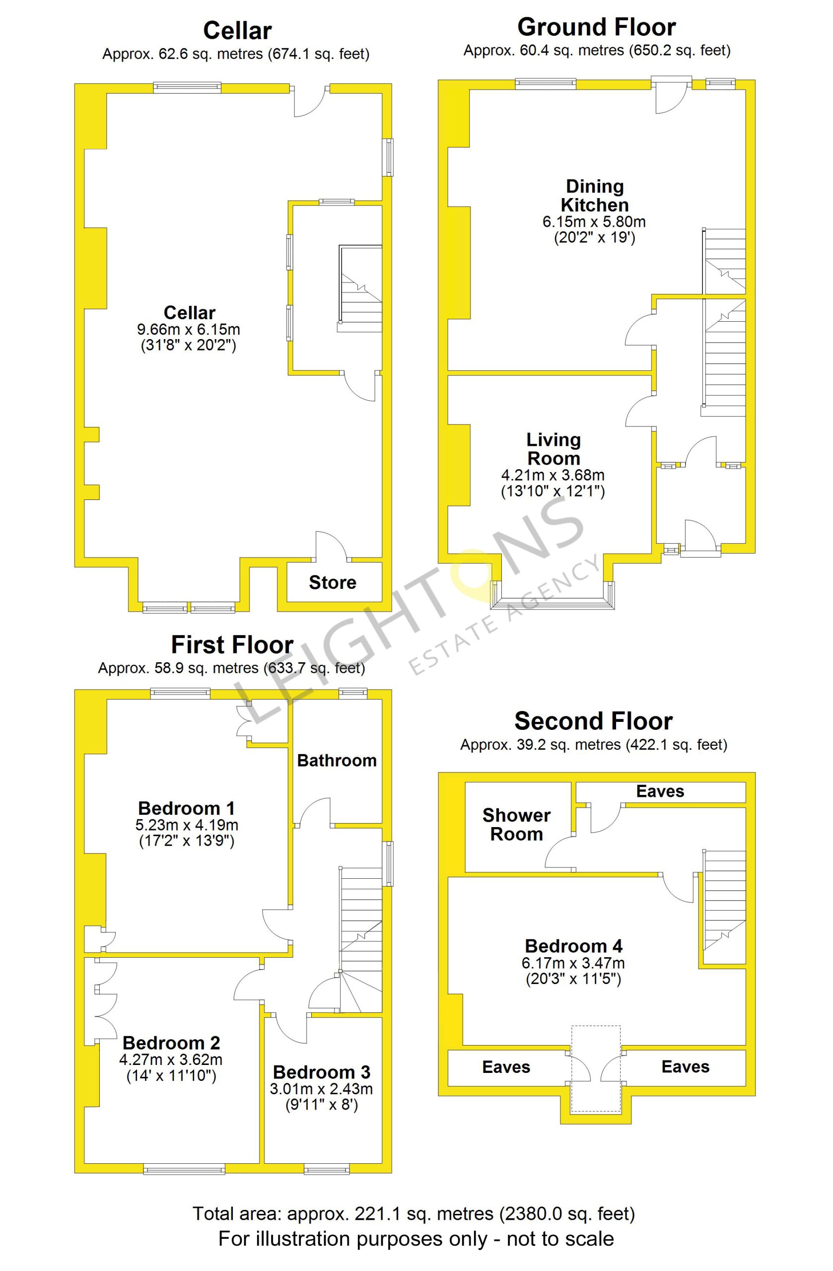 The first floor holds a large principal bedroom beside the house bathroom, with space for an en-suite if desired. A further double bedroom with built-in wardrobes and a generous single complete this level. The top floor provides another spacious bedroom with a Velux window, eaves storage and a modern shower room.