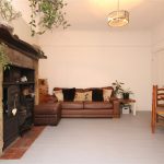 At the rear is the dining room, currently used as a second sitting room as well as a place to gather around the table. The original ornamental stove sits proudly within a large inglenook fireplace and quickly becomes the focal point. Fitted storage to either side provides practical space, while there is still plenty of room for a family dining table and chairs. From here, the room leads into a useful rear porch with tiled flooring and built in storage, ideal for coats and shoes.