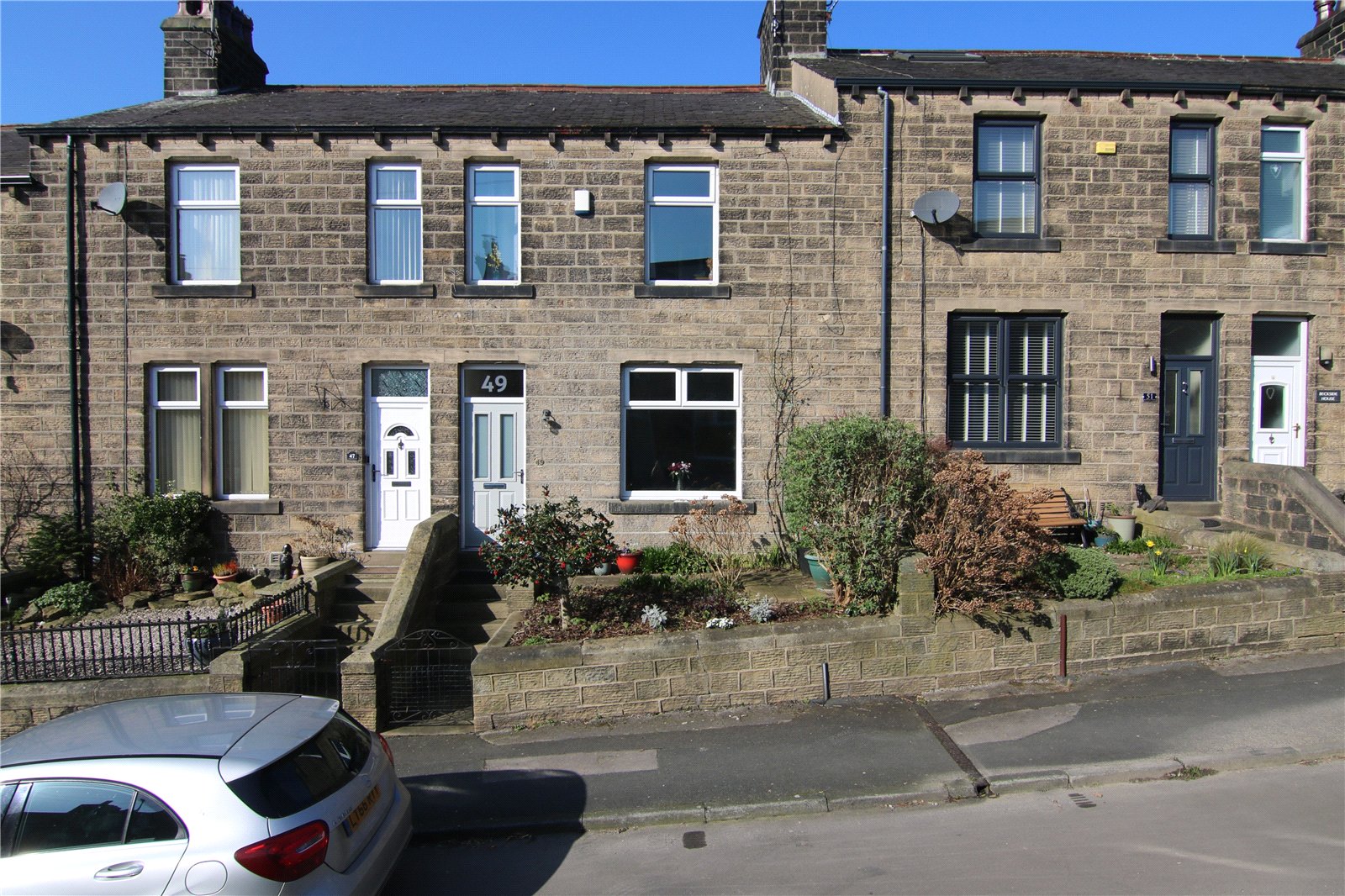 Outside, stone steps rise through the front garden to the entrance. To the rear sits a spacious enclosed flagged yard, well suited to sitting out during the warmer months.