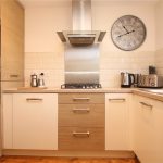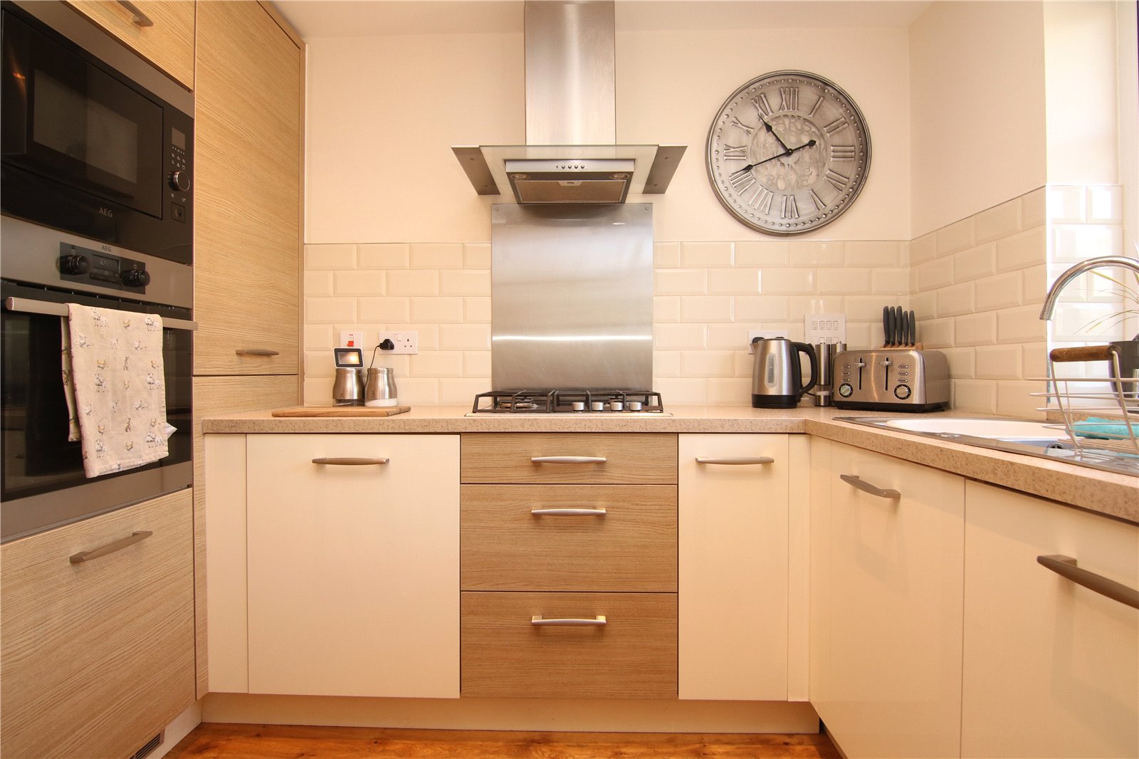 The property opens into a practical entrance hall which includes a useful storage cupboard, a space designed for laundry appliances under the stairs and a cloakroom with WC. The hallway flows through to the kitchen, fitted with a range of wall and base units and complete with an integrated fridge freezer, electric oven, microwave and gas hob, providing both practicality and a smart finish.