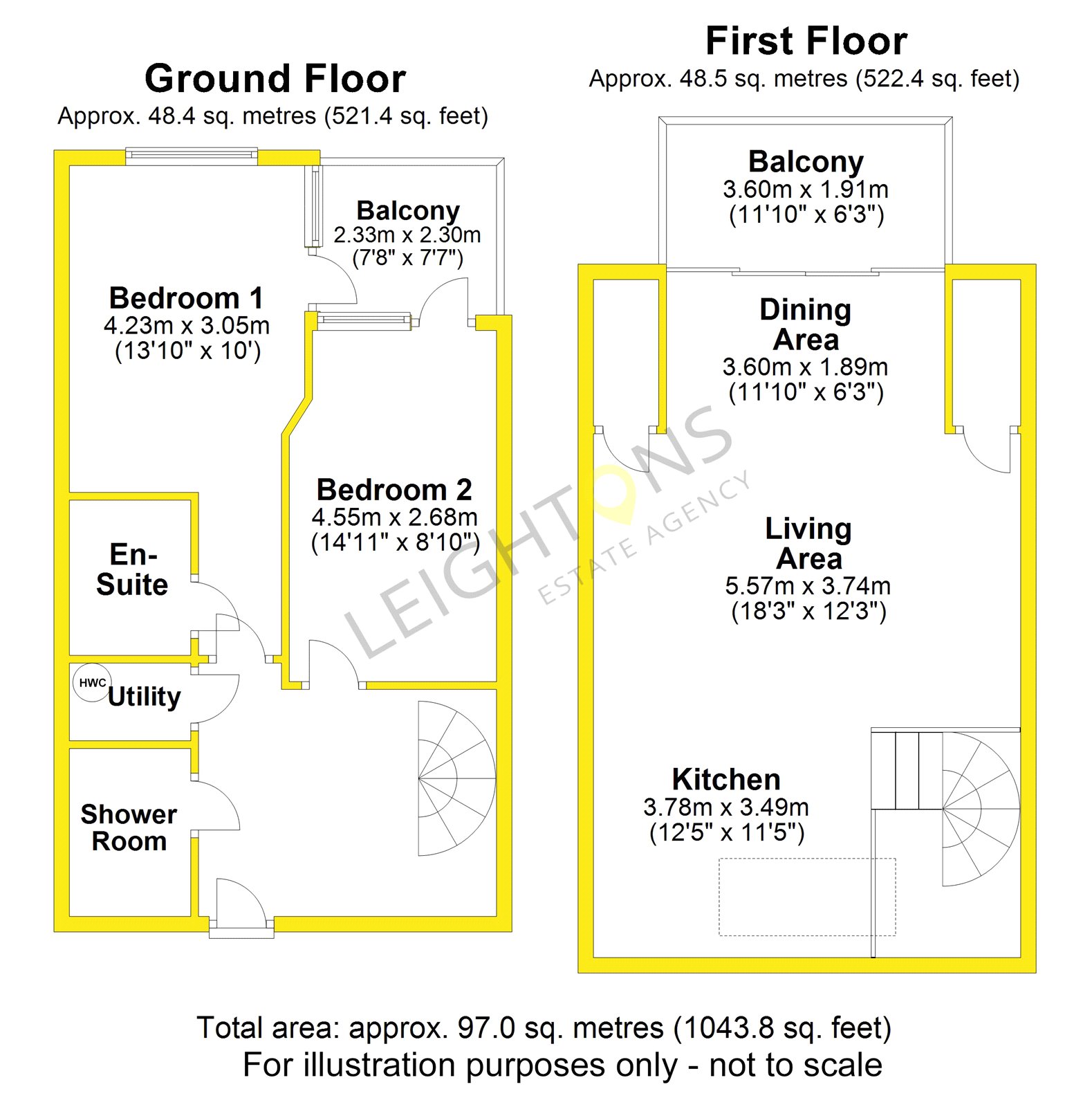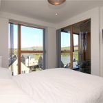 There are two well proportioned double bedrooms on the lower floor, both fitted with bespoke wardrobes and both taking full advantage of the outlook through floor to ceiling glazing. Each bedroom has direct access onto a covered decked balcony, creating a great spot for a morning coffee. The main bedroom is served by a smart ensuite shower room, while a matching house shower room adds further practicality, as does the utility closet.