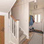 The property opens into a central hallway with a cloakroom and a return staircase rising to the first floor.