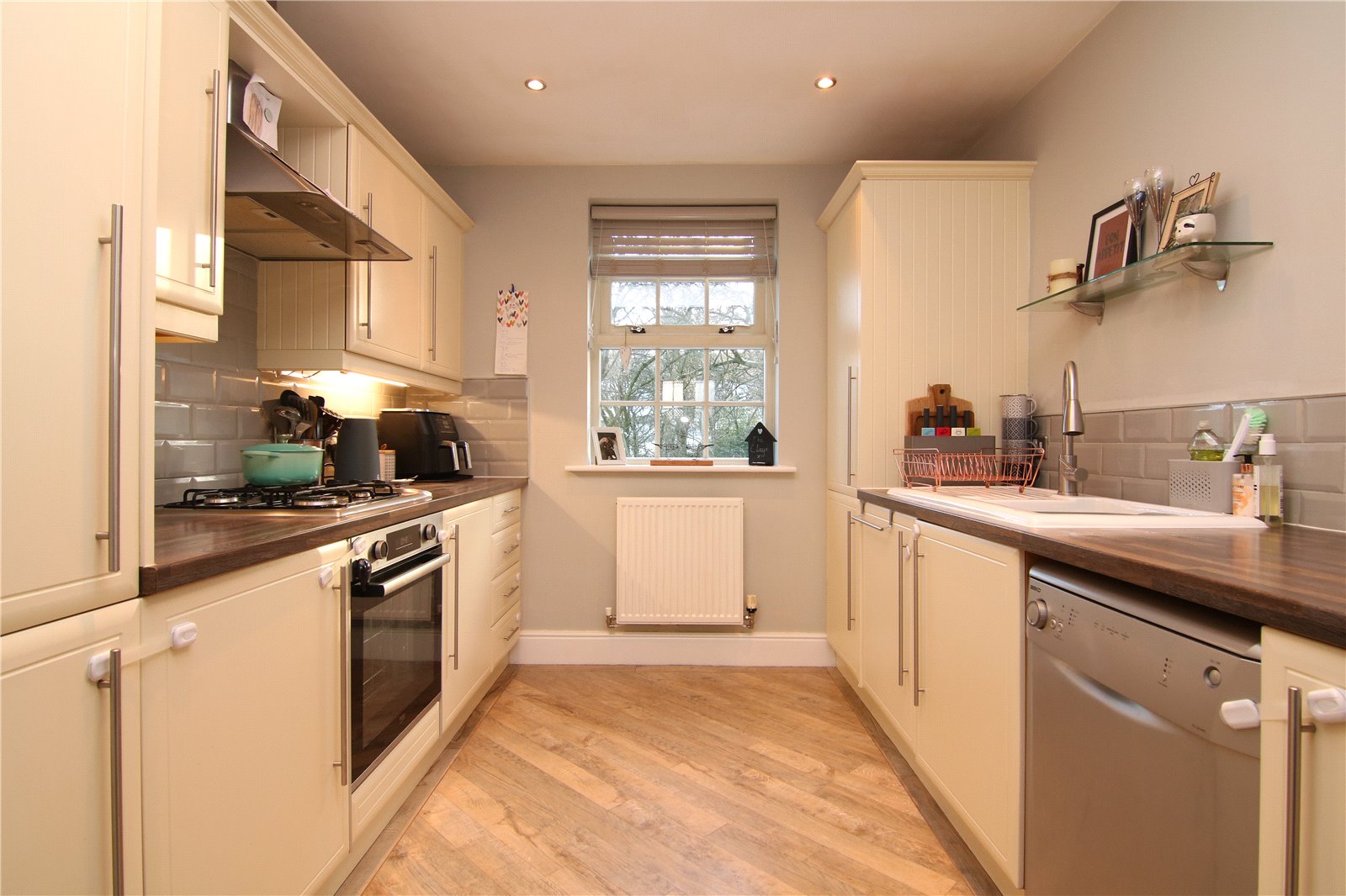 The well-equipped kitchen has a fridge/freezer, electric oven and gas hob. There is plumbing for a dishwasher and a pleasant outlook towards mature trees.